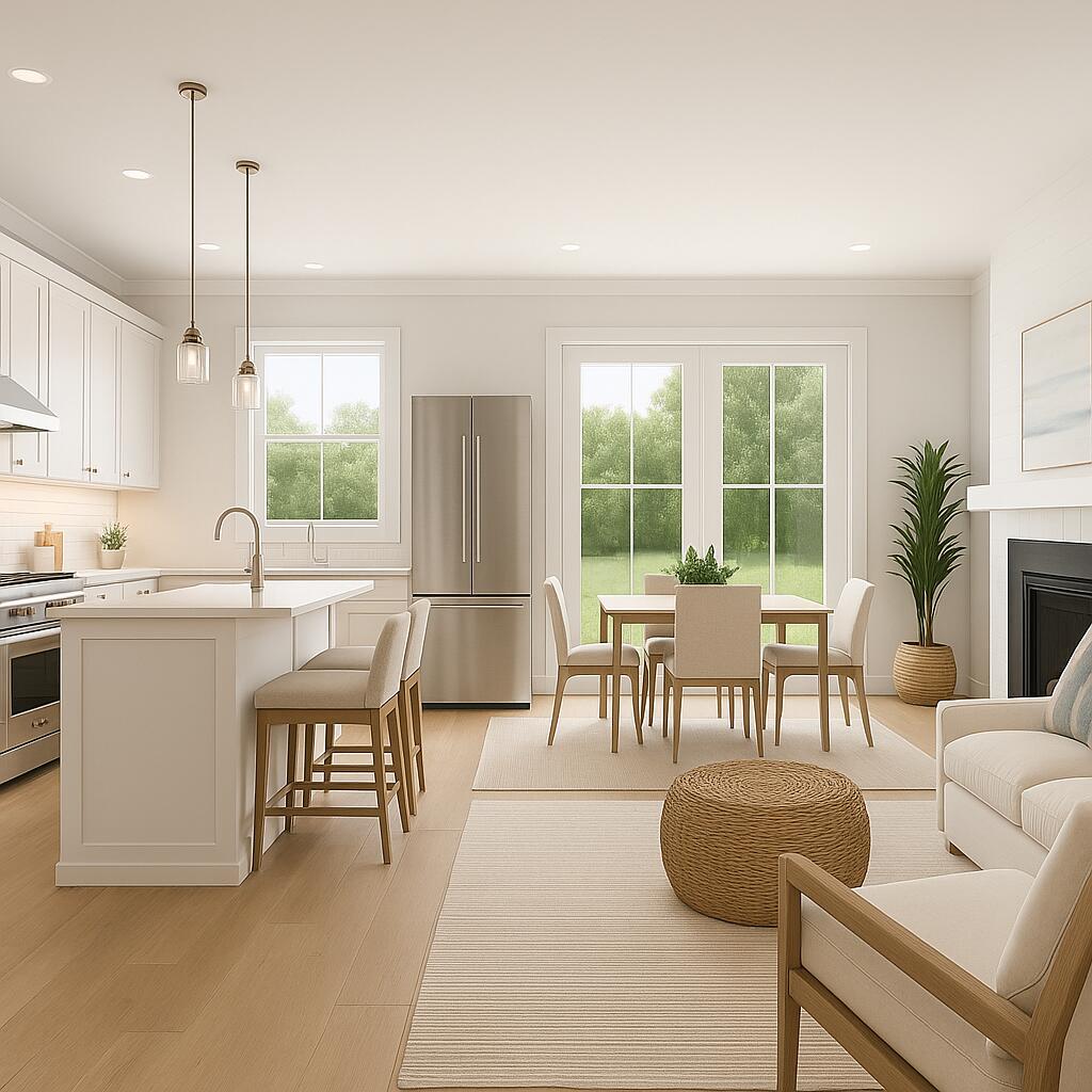 Designed with high-end finishes throughout, this home offers a spacious eat-in kitchen, rich engineered hardwood floors, and a vaulted ceiling in the primary bedroom that fills the space with light and dimension. Step outside to a private covered patio off the kitchen or the welcoming front porch steps from the water.